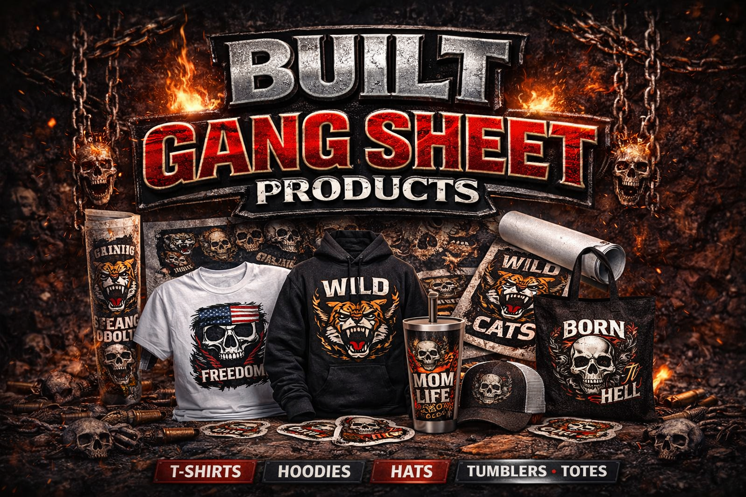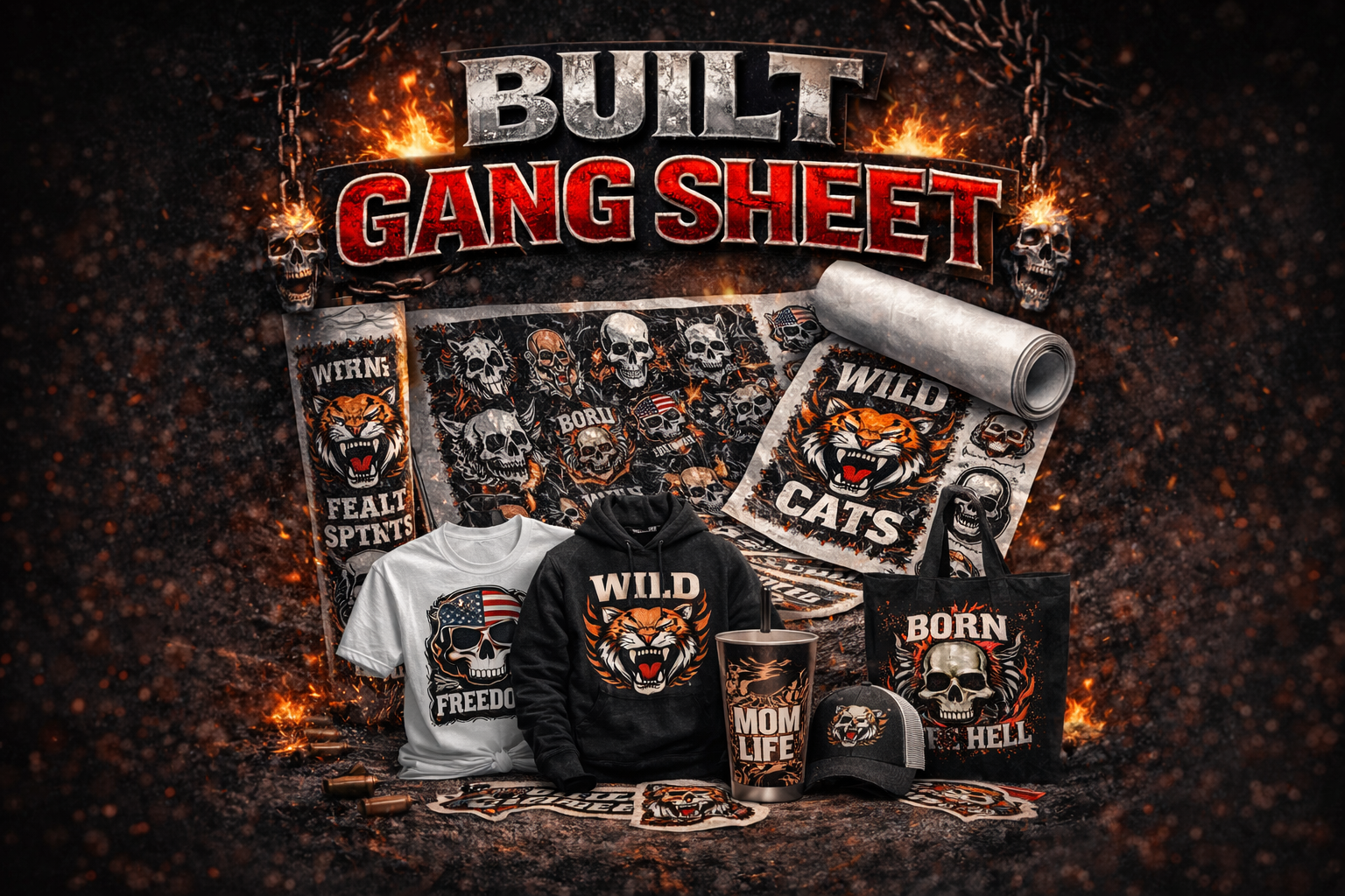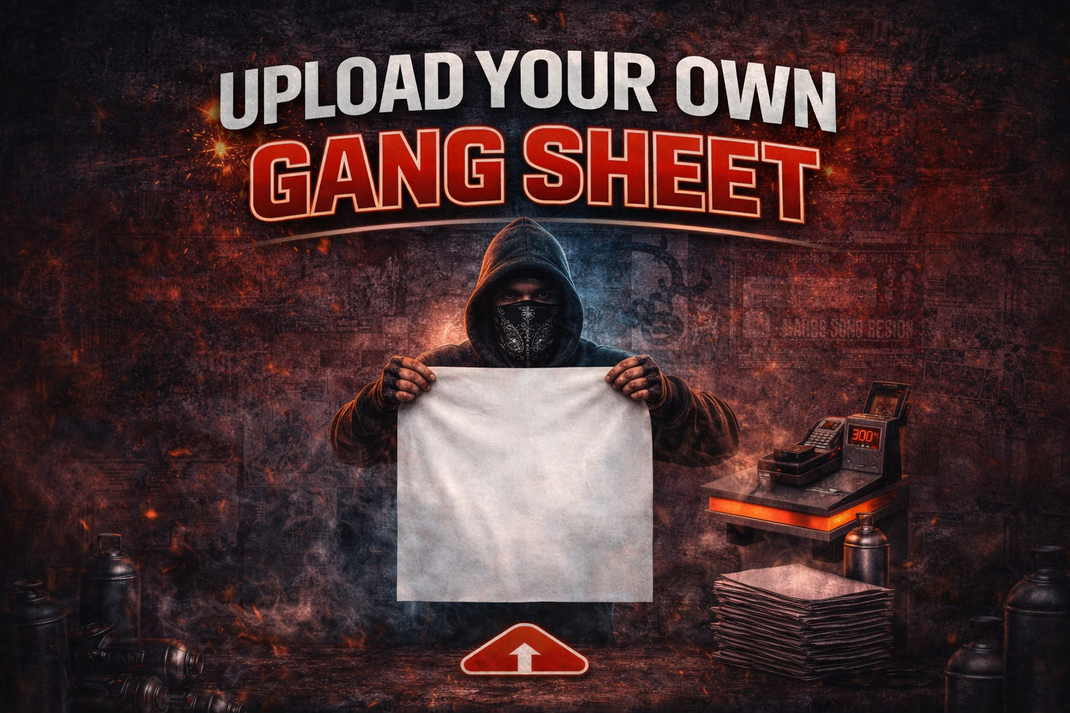 Create custom DTF gang sheets in minutes with our easy-to-use builder or upload your own ready-to-print file. Whether you’re printing for a business, a brand, or personal projects, our tools let you fit multiple designs onto a single sheet to reduce costs, save material, and speed up production — all without compromising print quality.